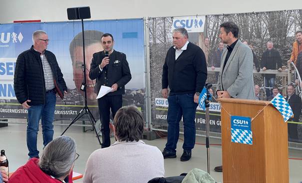 Mit einer Auftaktveranstaltung ist der CSU-Ortsverband Griesstätt in die Veranstaltungsreihe zur Kommunalwahl am 08. März gestartet. Vorgestellt wurden die 14 Kandidatinnen und Kandidaten der CSU-Liste, angeführt vom Bürgermeisterkandidaten Josef Linner. In thematisch breit gefächerten Beiträgen ging es um die Zukunft der Gemeinde – von Landwirtschaft und Klimaschutz über Infrastruktur und Ortsentwicklung bis hin zu Ehrenamt und gesellschaftlichem Zusammenhalt.